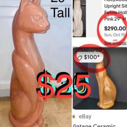 $25 Mid century Hollywood regency 29” Ceramic Cat Vintage sold as is👀 pics some cracks & chip ear$25Boca Raton, FL