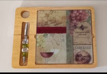 wood cheese board with tile inlay and cutting spreading knife $3 FIRM$3Boca Raton, FL
