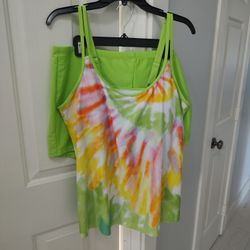 Bathing suit two-piece tankini fluorescent green yellow red (2XL)$15Lake Worth, FL