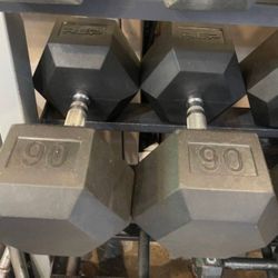 90 LB. RUBBER PAIR OF NEW REP FITNESS HEX DUMBBELLS • Also Have 60s 50s 45s 40s 35s 30s 20s 15s $230Deerfield Beach, FL
