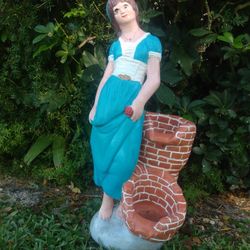Garden Water Fountain 24" Hand Painted Girl with Cross, Vintage 1980s Lawn Ornament "Distinctive Statuary" Art Statue Figure Heavy Cement Sculpture $30Deerfield Beach, FL