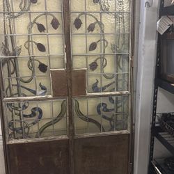 Antique Massive Stained Glass Double Door Paneled Wrought Iron Art Nouveau Architectural Style 7’ X 41”$2,500Riviera Beach, FL
