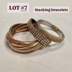 Gold Tone Bracelet Stack – 3pc (Coil Wrap, Rhinestone Stretch, Textured Bangle) $40Lake Worth, FL