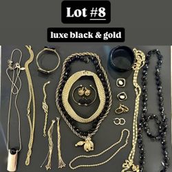 Vintage Jewelry Lot Black & Gold Statement Necklace Earrings Bracelets Chains$100Lake Worth, FL