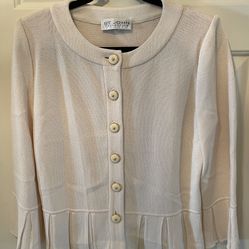St. John Collection Ivory Knit Pleated Jacket Gold Button Sweater Cream RT08 GRP3$300Boca Raton, FL