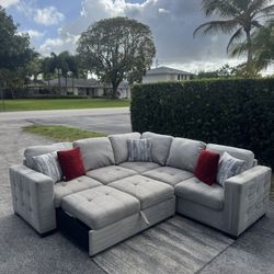 Light Gray Large Sectional Sofa w/ Pullout Ottoman (Delivery Available)$700Delray Beach, FL