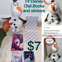 $7 Disney bundle Olaf 14β plush,Books & stickers$7Boca Raton, FL