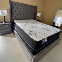 Bed Frame Gray Full Size New (mattress And Nighstand Sale For Separated )$365Medley, FL