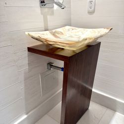wood L pedestral vanity with onyx stone from Farrey’s$740Hollywood, FL