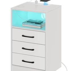 Nightstand with Wireless Charging Station and LED Lights, Modern End Side Table with 3 Drawers and Open Compartment for Bedroom, White$25Medley, FL