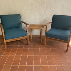Outdoor Cushioned 3 Piece Chat Set, Patio Set - Teak Finish & Blue - Weston 33326 - $250$250Fort Lauderdale, FL