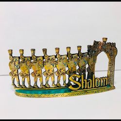 Vintage Hanukkah Menorah Brass Enameled Shalom Warriors Judaical Candle Holder 11” long$130Boca Raton, FL