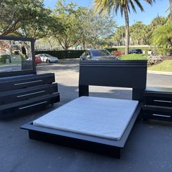 Queen Size Bedroom Set With Two Nightstand, Dresser, Mirror, And Mattresses Set. All New Furniture Free Delivery Free Installed $899Miramar, FL