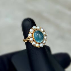 Jewelry 14k solid yellow gold natural pearl aquamarine stone 2.00CTW heart ring size 5.50$1,800Pompano Beach, FL