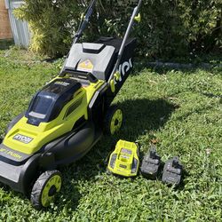 NEW OPEN BOX RYOBI 16 INCHES 18 V BRUSHLESS PUSH LAWNMOWER IS AN ORIGINALBOX INCLUDES TWO 2Am LITHIUM BATTERIES WITH FAST CHARGER GRASS CATCHER. IT'S$185Fort Lauderdale, FL