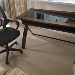 Wooden frame with dark glass base and metal and wood legs. 48"x30"x24" includes black chair$40Fort Lauderdale, FL