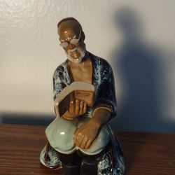 Vintage Chinese Mudman Glazed Pottery Figurine of an Elder with Glasses Reading a Book. It has a defect in the glasses; sold as is.$30Miami, FL