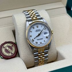 1989 Rolex Datejust 16233 36mm 18k yellow gold & stainless steel jubilee bracelet factory white roman numeral dial 18k fluted bezel box tag appraisal $6,800Boca Raton, FL