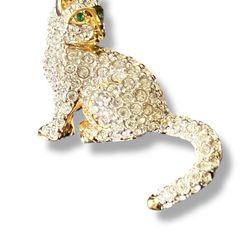 Swarovski Pave Cat Kitten Gold Plated Crystal Green Eyes Brooch Pin Swan Mark$25Fort Lauderdale, FL