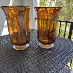 Heavy Art Glass Bullicante "Controlled Bubbles" Hand Blown Amber Gold Or Honey Gold Votive/Tealight Holders Set Of 2 3 3/8" X 1 7/8"H$15Fort Lauderdale, FL