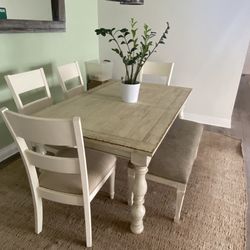 Real Ashwood dinning table with bench and 4 chairs.$650Hialeah, FL