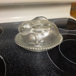 Vintage INDIANA CLEAR GLASS Bunny Rabbit On A Nest Candy Dish With Lid NICE!$10Fort Lauderdale, FL