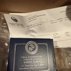 US Mint 250th Anniversary Marine Corps Silver Proof Coin$160Delray Beach, FL