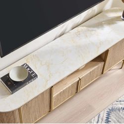 OKD Luxury 70" Fluted TV Stand, Modern Chic Entertainment Center for TVs Up to 80 inches, TV Console with Faux Marble Top, Curved Profile Design, Medi$95Miami Beach, FL