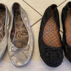 Lot 2 Sam Edelman Ballet Flats Size 8.5 M Silver Felicia & Black Spiked Beatrix$60Boca Raton, FL