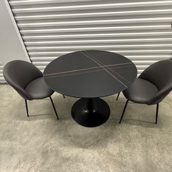 Modern black round dining table with 2 gray chairs$150Hialeah, FL