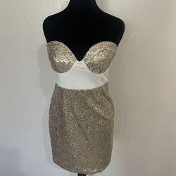 Pink Eve Sequin Strapless Mini Dress - Gold/White - Size Medium$30North Miami Beach, FL