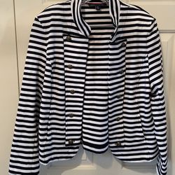 Tommy Hilfiger Women XL Nautical Stripe Military Blazer Jacket Knit Blue White$34Boca Raton, FL