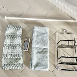 2 Shower Curtains, Curtains Hooks, Curtains Holder And Shower Organizer All For $8$8Orlando, FL
