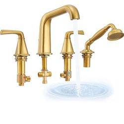 Roman Tub Faucet with Sprayer, Garden Tub Faucet with Valve, Brass 4 Hole 2 Handle, Widespread Deck Mount Tub Filler with Diverter, High Flow Bathtub $100Orlando, FL