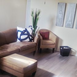 Olive green sofa ottoman 2 taupe armchairs set$150Orlando, FL