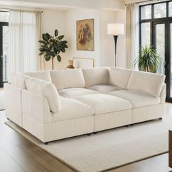 New Cream / Ivory Corduroy Modular Sectional Sofa & Ottoman Reconfigurable - Cloud-like Sleeper $999Windermere, FL