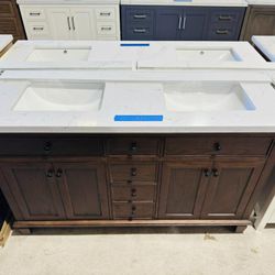 60” Bathroom Vanity in Brown color , double sink soft close solid wood with vanity top in white $849 $849Azalea Park, FL