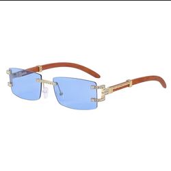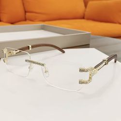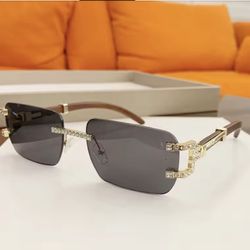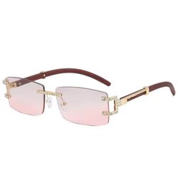 Luxury Rimless Gradient Sunglasses with Crystal-Studded Gold Frame and Wooden Temples. Unisex$45Davenport, FL