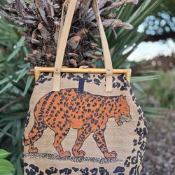 Handmade boho burlap bamboo tiger leopard painted bag purse hobo style made in India$60Longwood, FL