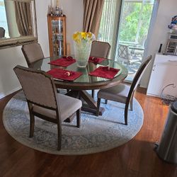 Round wood table with a glass top beveled.Edge and four chairs$450Orlando, FL