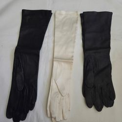 Vtg 3 Pair Of Gloves 2 Black( Leather 15" &14")& White(silk 15") Size 7$35Oakland, FL