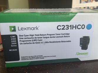 Lexmark C231HCO cartridge brand new compatible with models 2300, 2400, 2500 series MC2640. Selling one Cyan Cartridge brand new sealed box.$0Winter Garden, FL