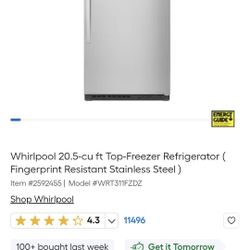 Whirlpool 20.5-cu ft Top-Freezer Refrigerator$350Auburndale, FL