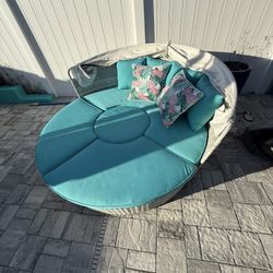 Turquoise Patio Round Daybed with Retractable Canopy, Rattan Wicker$600Davenport, FL
