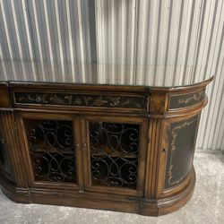 Wood Sideboard / Buffet Cabinet w Glass Top & Iron Doors$200Davenport, FL
