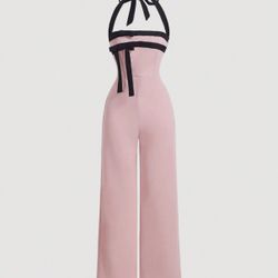 SHEIN MOD Women's Pink Contrast Bow Halterneck Jumpsuit, Pink Jumpsuit, Bow Clothing, Elegant Jumpsuit, Going Out Jumpsuit, Party Jumpsuit$9Davenport, FL