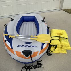 Like New Pathfinder 2 Person River Raft Inflatable Boat with Paddles pump and 4 life vests $100Oakland, FL