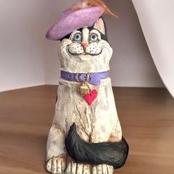 Telle M. Stein Black & White Cat Statue w/ Purple Hat & Feather 11.5"$55Lakeland, FL