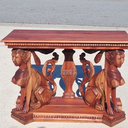 Vintage Heavily Carved Solid Mohagany, Egyptian Revival Console Table With Twin Sphinx Pillars $6,200Cypress Gardens, FL