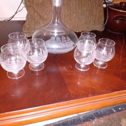 Vintage Decanter/6 Glasses/Etched Ship On All$55Mulberry, FL